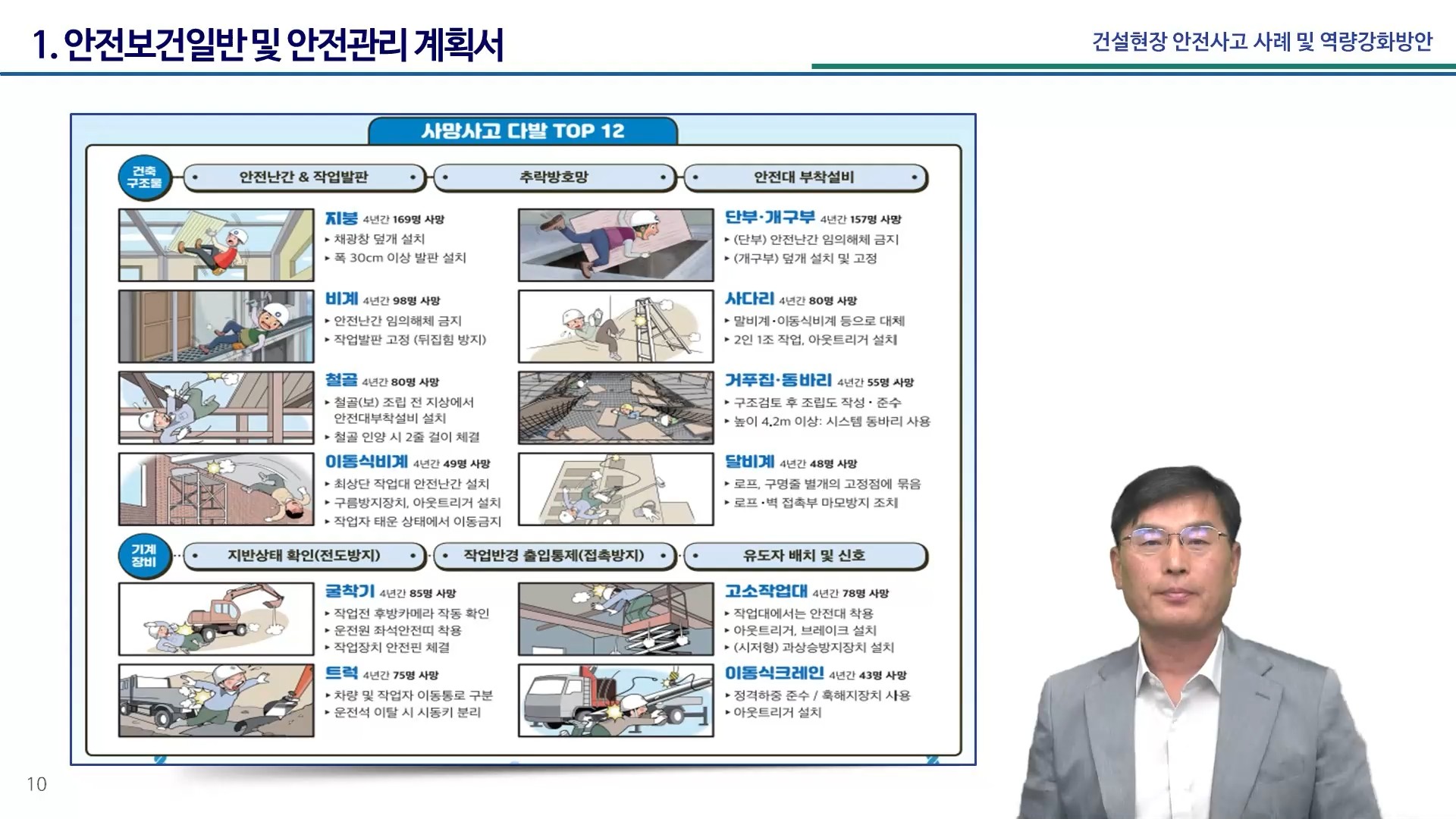 - ¢Â °í¼ÒÀÛ¾÷ Áß ¹ß»ýÇÏ´Â Ãß¶ôÀçÇØÀÇ À¯Çü°ú ¿øÀÎ ÇнÀ ¢Â Ãß¶ô ¿¹¹æÀ» À§ÇÑ ±Ù¿øÀû ´ëÃ¥ ¹× ¹æÈ£¼³ºñ ÀÌÇØ ¢Â °³Àκ¸È£±¸(¾ÈÀü´ë, ¾ÈÀü¸ð µî)ÀÇ ½Ç¹« Àû¿ë ¹æ¹ý ÇнÀ ¢Â °Ç¼³±â°è ¹× °íÀ§Çè ÀÛ¾÷(Å©·¹ÀÎ, Áö°ÔÂ÷ µî)ÀÇ ¾ÈÀüÁ¶Ä¡ ÇнÀ