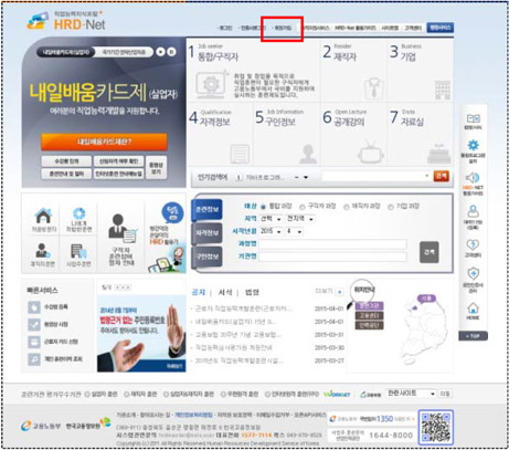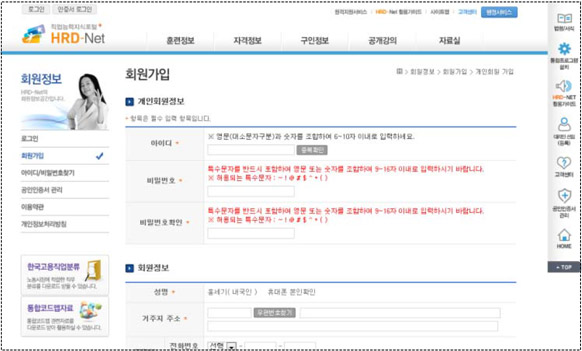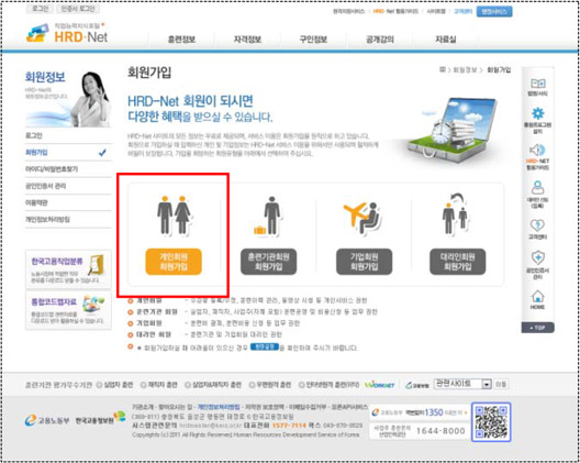 ¡Û HRD-Net(www.hrd.go.kr)¿¡ Á¢¼Ó ÈÄ È¸¿ø°¡ÀÔ ¹öưÀ» Ŭ¸¯ÇÕ´Ï´Ù.