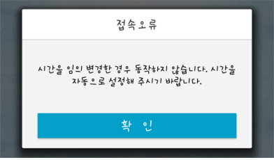 A. ÀÚµ¿½Ã°£´ë¸¦ ¼³Á¤ÇÏÁö ¾ÊÀº »óÅ¿¡¼´Â ¾ÛÀÌ Á¤»óÀûÀ¸·Î ½ÇÇàÀÌ ¾ÈµË´Ï´Ù. 15ÆäÀÌÁöÀÇ ¾È³»¿¡ µû¶ó ¼³Á¤º¯°æÇϽñ⠹ٶø´Ï´Ù. [ÈÞ´ëÀüÈ ¼³Á¤ > ÀÚµ¿½Ã°£¼³Á¤]