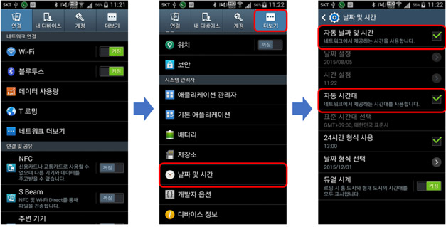 ¢¡ [ÇØ°á¹æ¹ý] (½º¸¶Æ®Æù)¼³Á¤ ¢¡ ³¯Â¥ ¹× ½Ã°£ ¢¡ ³¯Â¥ ¹× ½Ã°£ ÀÚµ¿ ¼³Á¤(¼³Á¤), ½Ã°£´ë ÀÚµ¿ ¼³Á¤(¼³Á¤)