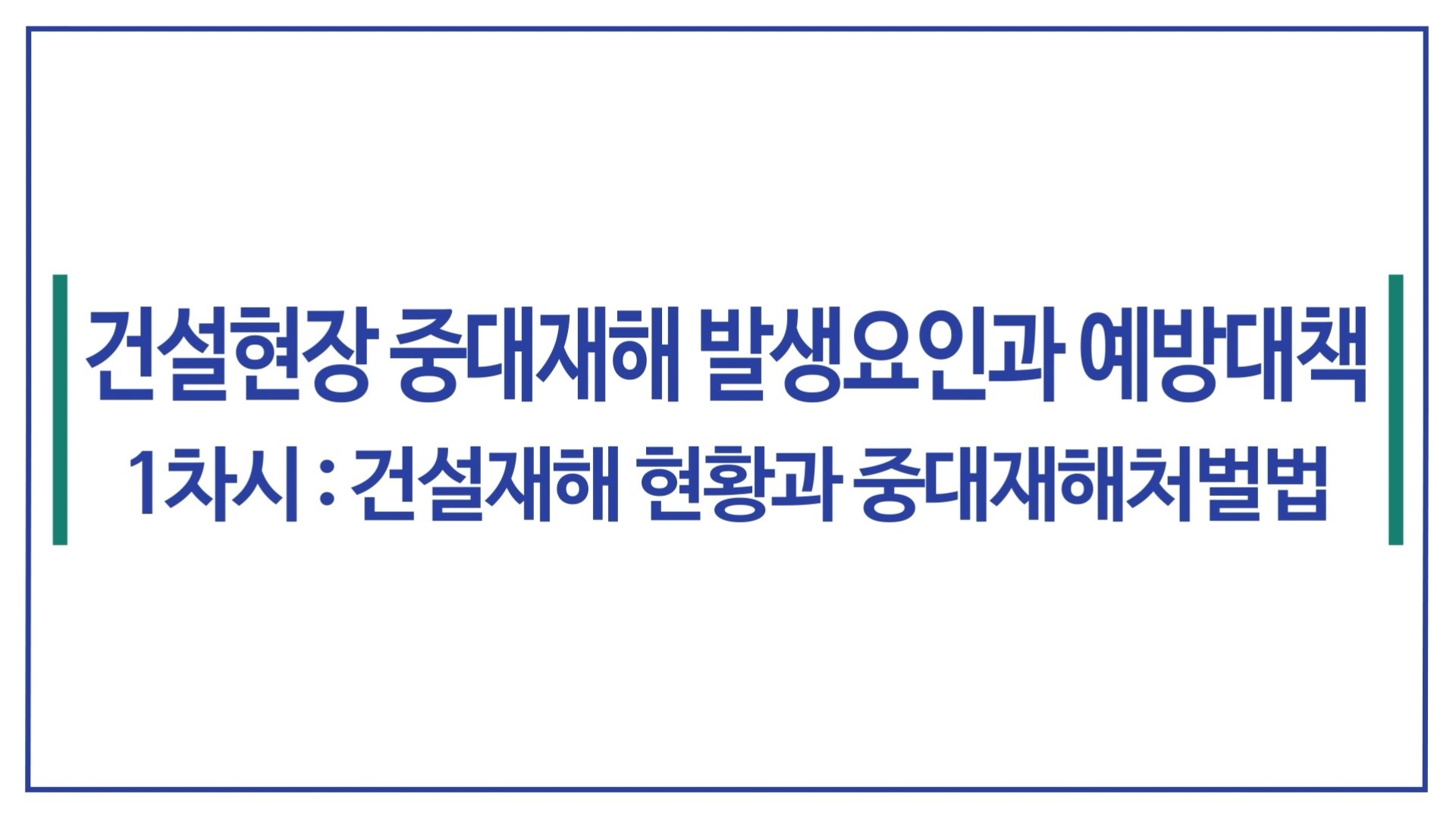 - ¢Â °Ç¼³ÇöÀåÀÇ ÀçÇØ ¹ß»ý ÇöȲ°ú ÁÖ¿ä ¿øÀÎÀ» ÀÌÇØÇÑ´Ù. ¢Â Áß´ëÀçÇØÃ³¹ú¹ýÀÇ ÇÙ½É ³»¿ëÀ» ¼÷ÁöÇÏ°í ½Ç¹« ´ëÀÀ ¿ª·®À» °®Ãá´Ù. ¢Â À§Ç輺Æò°¡ÀÇ °³³ä ¹× ÀýÂ÷¸¦ ÀÌÇØÇϰí, ÇöÀå¿¡ Àû¿ëÇÒ ¼ö ÀÖ´Ù.