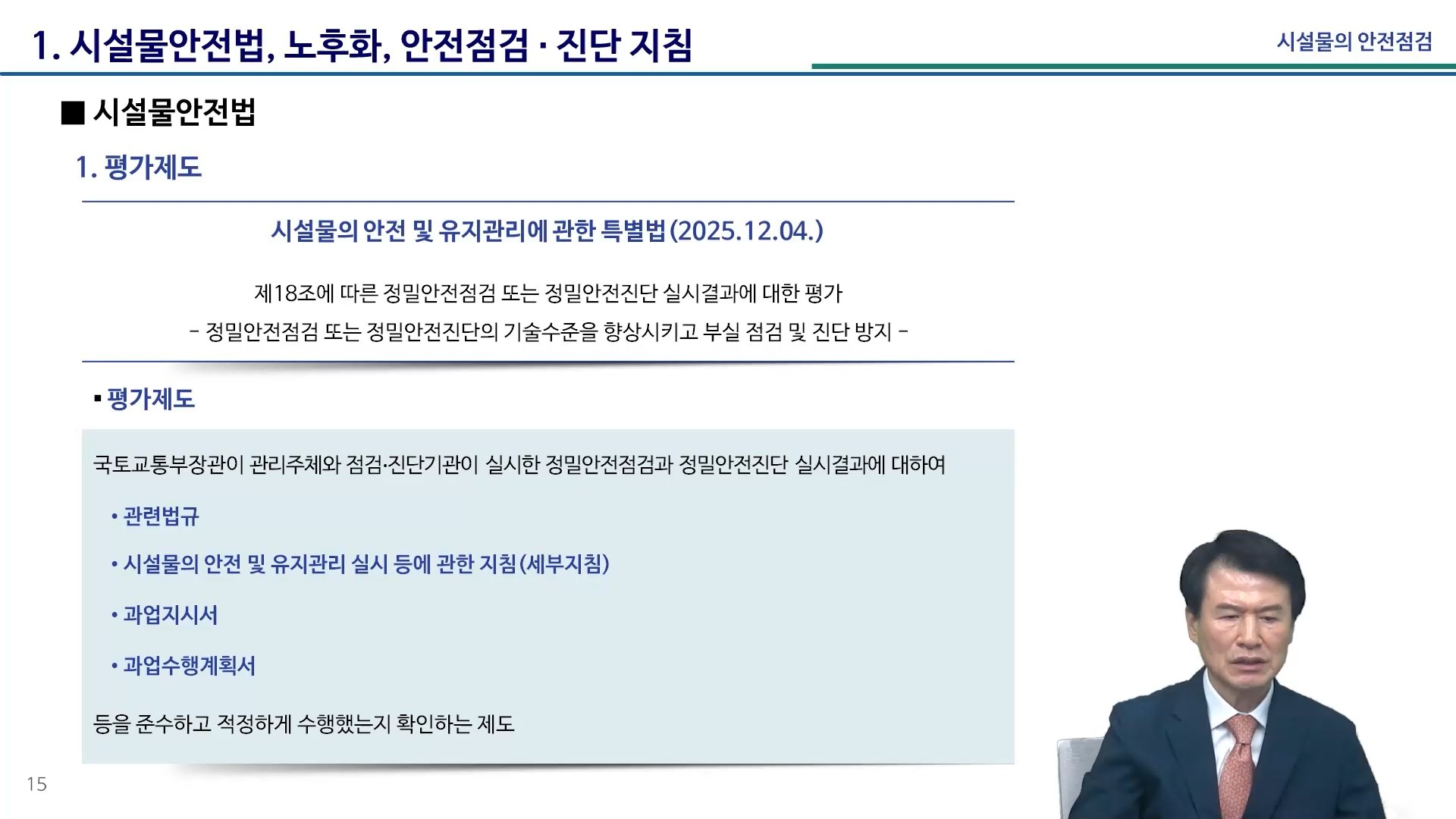 - ¢Â ¾ÈÀüÁ¡°Ë ¹× Á¤¹Ð¾ÈÀüÁø´Ü ¼¼ºÎÁöħ ÇØ¼³¼(10.°ÇÃ๰)¸¦ ÀÌÇØÇÏ°í ½ÀµæÇÒ ¼ö ÀÖ´Ù. ¢Â Á¤¹ÐÁ¡°Ë Á¶»çÇ׸ñÀ» ¾Ë°í Àû¿ëÇÒ ¼ö ÀÖ´Ù. ¢Â Á¤±âÁ¡°Ë, Á¤¹Ð¾ÈÀüÁ¡°Ë Áø´Ü Ç׸ñ, ½Ã¼³¹° Æò°¡º° ¾ÈÀüÁ¡°Ë Áø´ÜÇ׸ñÀ» ÀÌÇØÇϰí, Àû¿ëÇÒ ¼ö ÀÖ´Ù.